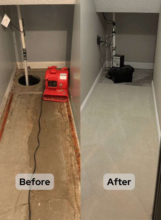 - Drying and dehumidification to eliminate moisture and prevent mold.
