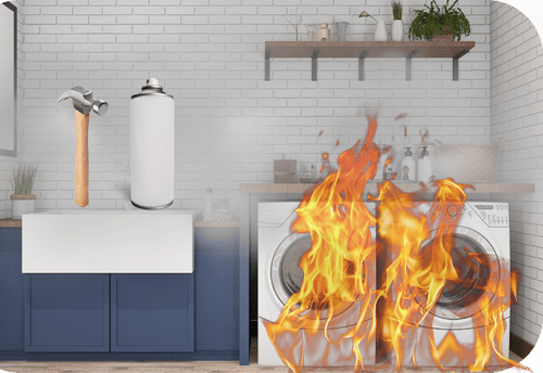 This case study begins with a seemingly ordinary day for our client, who started a routine load of laundry and left for the day. Unfortunately, the laundry area was cluttered with various items, including a hammer and a can of spray paint. As the dryer vibrated during operation, it knocked the hammer off the shelf, causing it to strike the nearby spray paint can. This led to a puncture that ignited a fire, resulting in extensive damage throughout the home. What started as a minor oversight escalated into a significant disaster, resulting in unexpected fire loss.